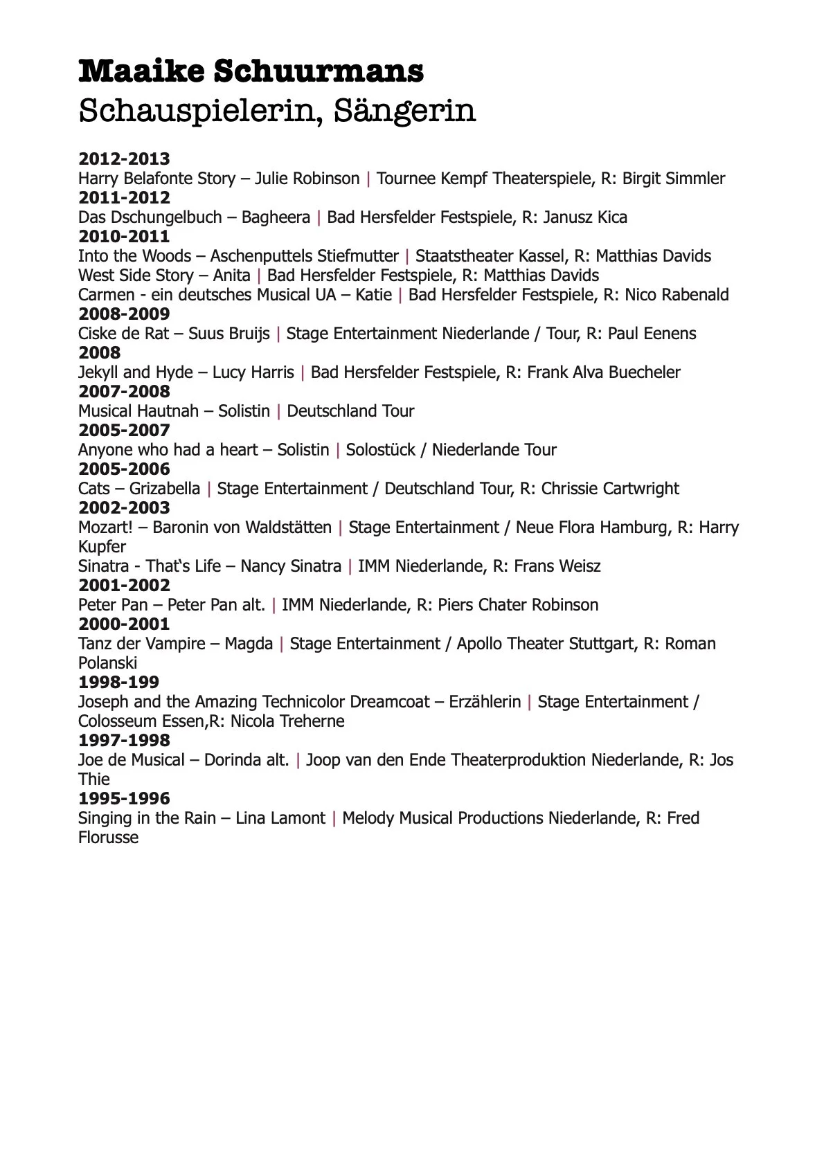 ““Maaike ist eine wunderbare Lehrerin, die sehr kompetent ihr Wissen weitergeben kann, weshalb ich unter ihrer Leitung schnell Fortschritte machen konnte und mir nie Sorgen um meine Stimme machen musste. Auch eventuelle Fragen, sowohl medizinischer, als auch gesangstechnischer Art kann sie sofort beantworten. Maaike arbeitet sehr einfühlsam und hat ein gutes Gefühl dafür, was ihre Schüler individuell weiterbringt und auf welche Art von Unterricht sie am besten anspringen. Durch ihren Unterricht habe ich CVT lieben gelernt und freue mich darauf mich auch weiterhin damit zu beschäftigen.””